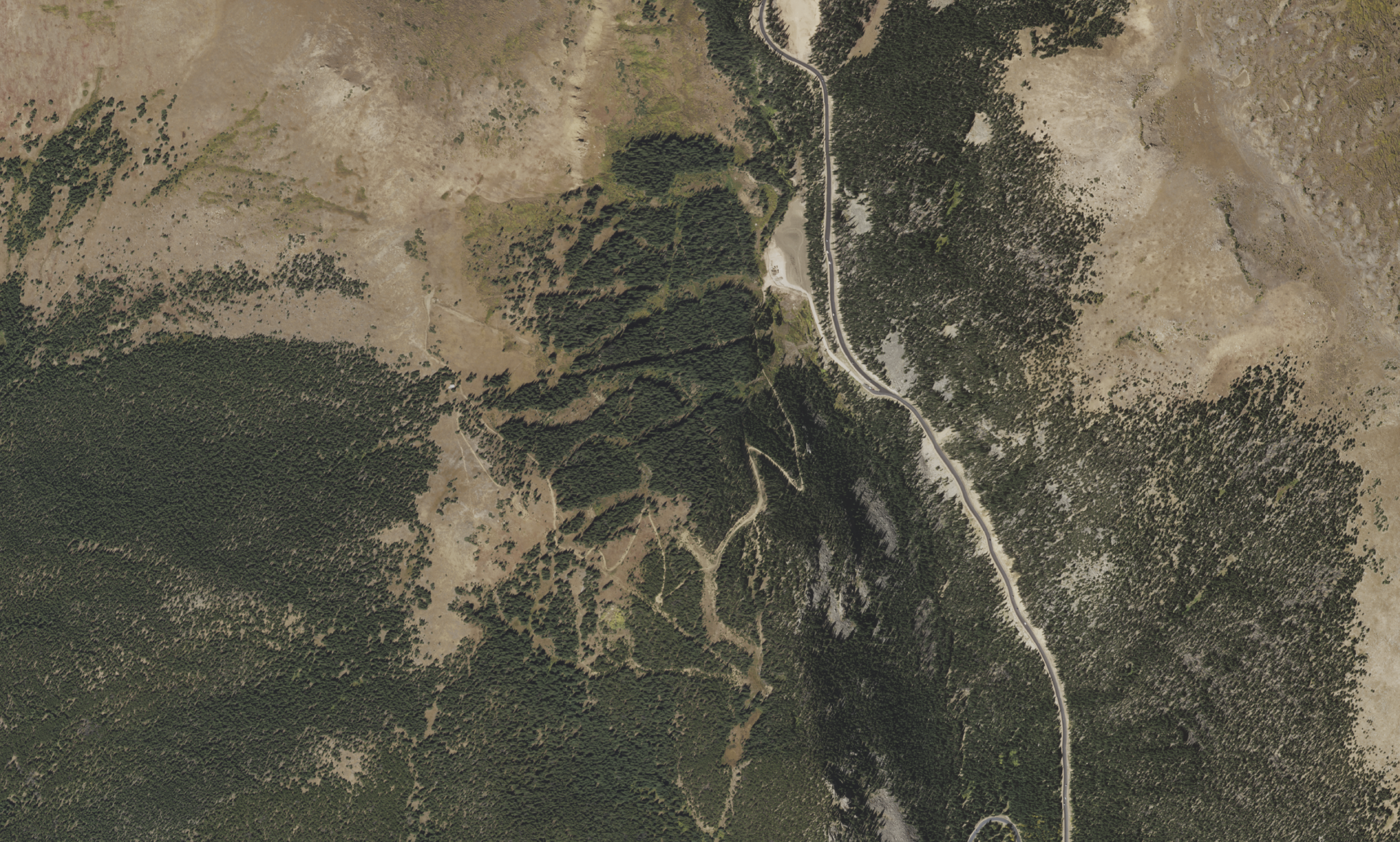 A satellite image of the old ski runs at Geneva Basin. Source: Caltopo