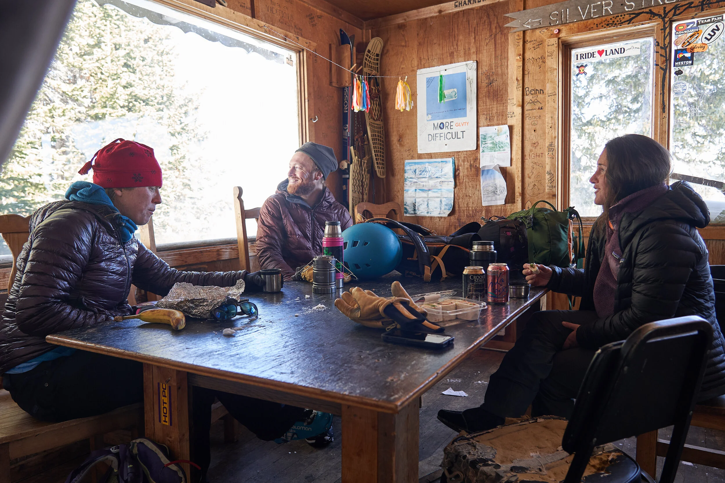 At the base, an old cat track meanders south before multiple switchbacks direct you to the old hut, just north of the summit. On the way up just below tree line, we dig a quick handpit on a southeast gladed run. While the base is thin, we find the expected: multiple persistent layers of weak snow towards the bottom of the snowpack. We filled the pit and kept skinning up, continuing our discussion about how we want to learn more about avalanche safety and snow science.