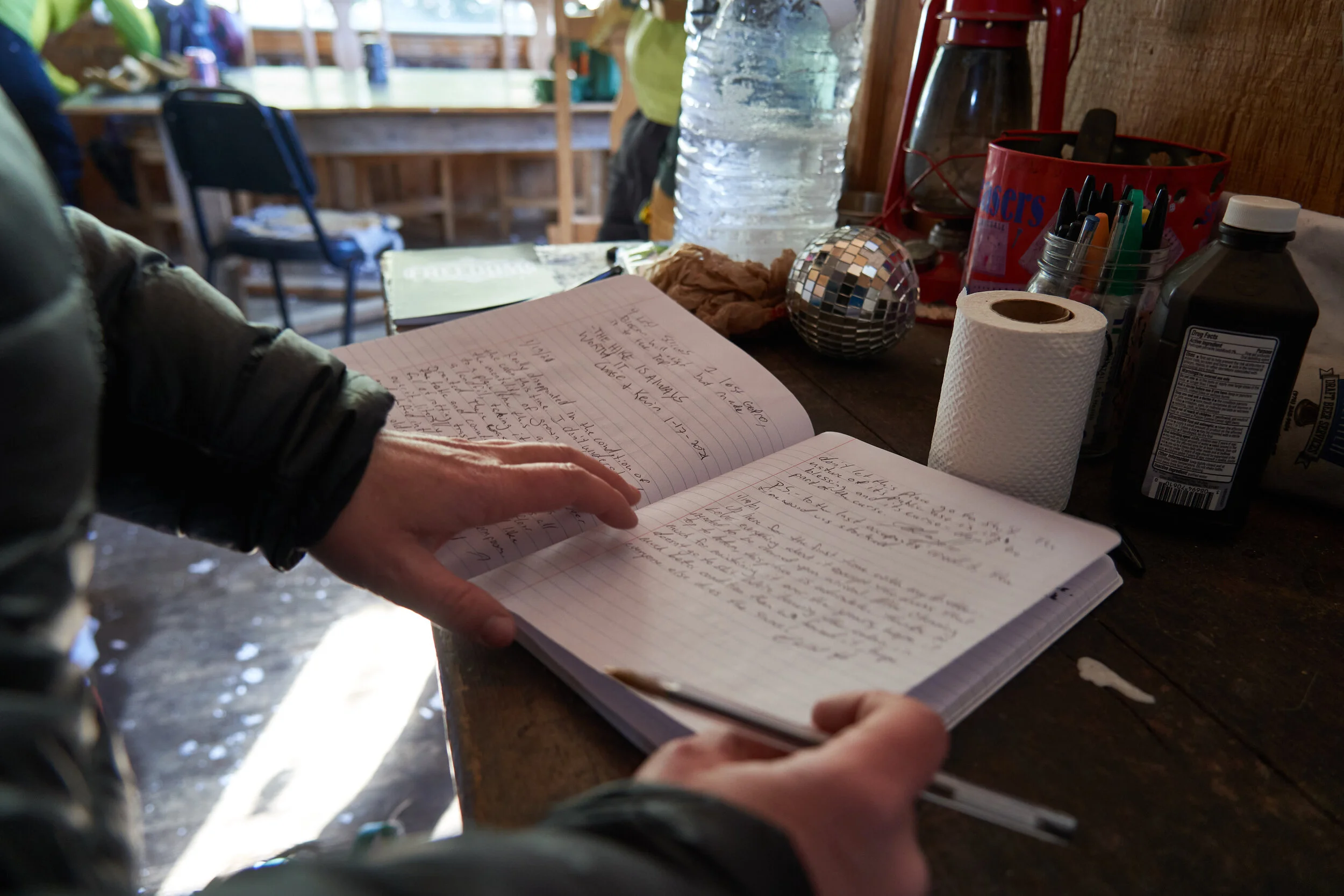 Walking into the hut is an experience itself, and one can almost feel the stoke of decades of backcountry users. And old wood stove sits in the sleeping room and a large wooden map illustrates all the trails and old lift lines on the mountain. The walls are full of sketches and notes, and if you take the time to look closely, you begin to piece together a written history of what the cabin has seen. A journal sits on the shelf and recent entries show many people have been visiting. I wonder to myself if the hut has always seen this much traffic, or only recently because of the pandemic. A small cluttered, make-shift kitchen has a window that looks out east to the Sawtooth, a jagged arête connecting Mt. Bierstadt to Mt. Evans. The hut has this strange and endearing vibe, like maybe some weird shit has gone down in here, but a lot of people have also made incredible memories there. I’m not sure who was able to advocate successfully for keeping the hut from being demolished, but I’m grateful for it.