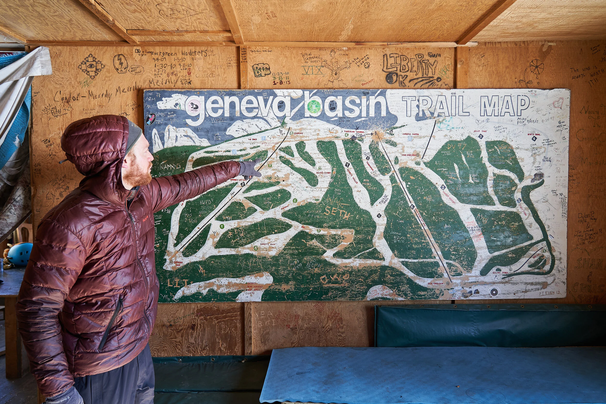 After flipping through Bronski’s guide every night for weeks, and obsessively building maps on Caltopo, I dialed in a location and easily convinced some friends to join. Deep into Pike National Forest, about 13 miles south of Georgetown, CO, lies a long abandoned ski resort: Geneva Basin. The ski resort operated intermittently between the 60’s and 80’s, finally closing its gates for good in 1984. But while the resort hasn’t operated in well over 20 years, and most of the structures had been removed by the forest service or the passage of time, it still holds a special place within the backcountry ski community of Colorado. A gentleman’s agreement between locals and the Forest Service has allowed for the old ski patrol hut to remain intact, the only true remaining structure left. Albeit a little dirty and cluttered, it’s maintained by volunteer backcountry users and is a great spot to rest and shelter from the elements before descending down one of the many old ski runs.