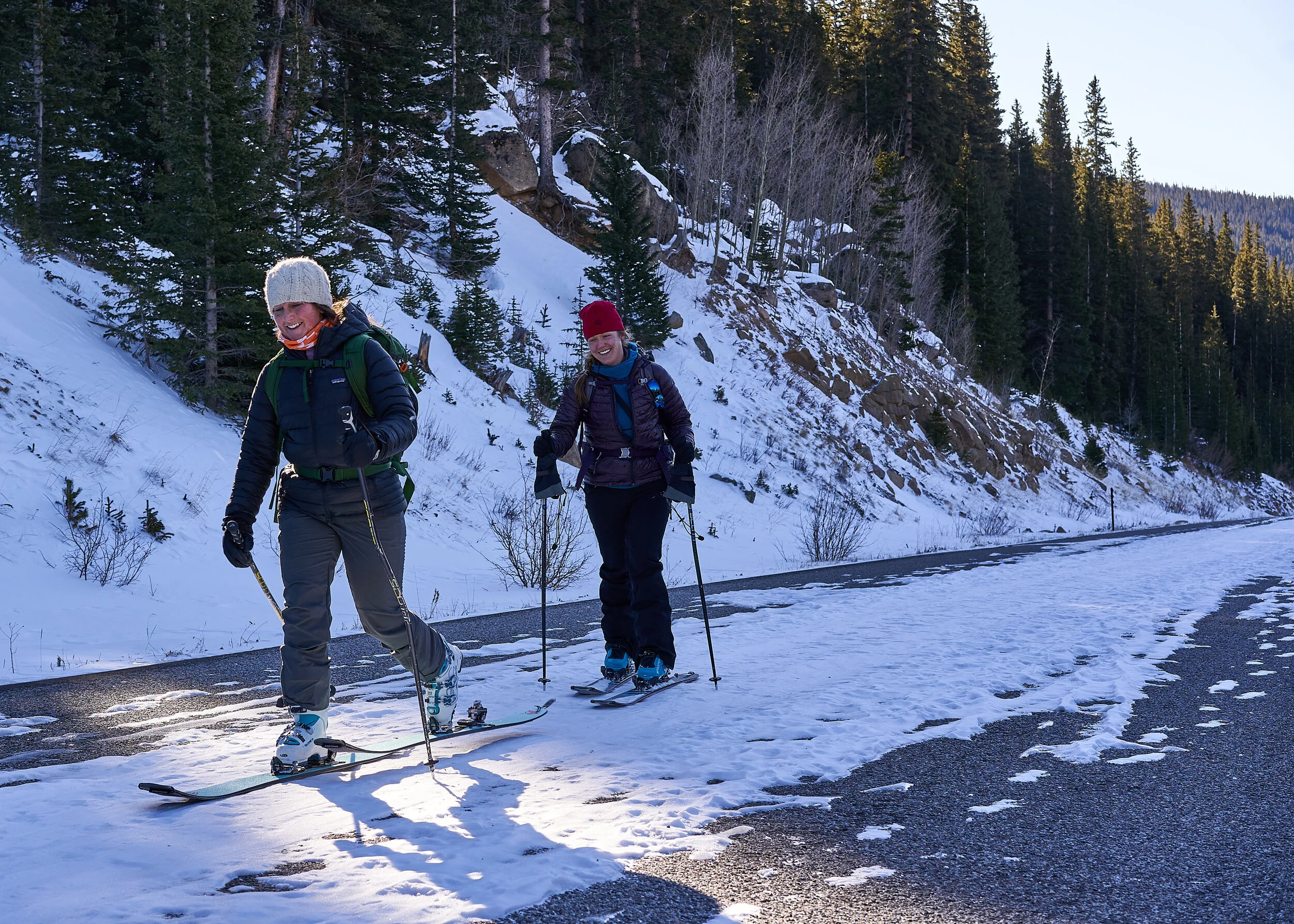 We reached the trailhead bright and early and ascended to the base by skinning up Guanella Pass. January still brought early season conditions and the road was barely covered from a light snowstorm the evening before. Once beyond the winter road closure, what would normally be a somewhat busy tourist road in summer, becomes the backcountry. You’re miles from any sizable town, and apart from the gusting wind, there is a silence and peacefulness that stretches out along the surrounding peaks and valleys. The distance you have to put in to reach the zone keeps many people away, which is exactly one of the reasons this place is so special. Moose and mountain lion tracks imprint the snow, and you often get the feeling that you’re surrounded by wildlife, even if you don’t constantly see it.